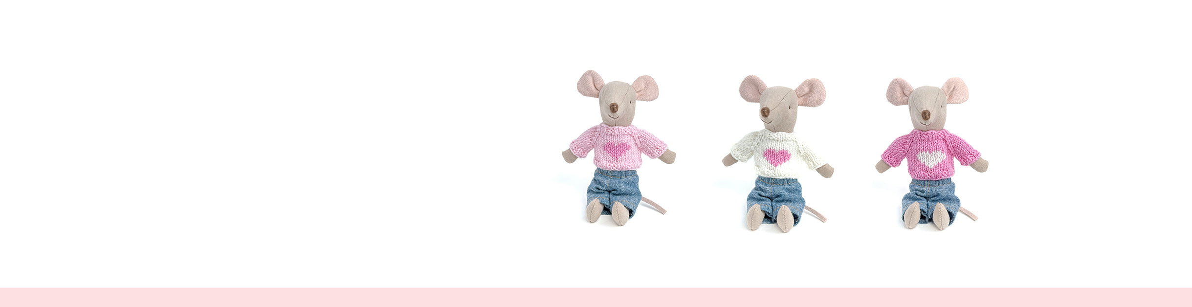 Enkle, håndlagde klær til Maileg-mus. Laget med tålmodighet og omhu. Laget i små antall.