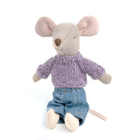 En mild lavendelmauve-genser laget for koselige stunder og små Maileg-museventyr.